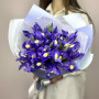 На фото букет из 15 синих ирисов. В составе: ирис 15 шт, дизайнерская упаковка 1 шт, атласная лента 1 шт, . Все цветы свежие и ароматные, букет красиво оформлен и отлично подходит для подарка. Доступна доставка цветов или самовывоз.