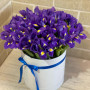 45 фиолетовых ирисов в шляпной коробке в Новошахтинске
