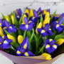 Букет из синих ирисов и желтых тюльпанов в Новошахтинске