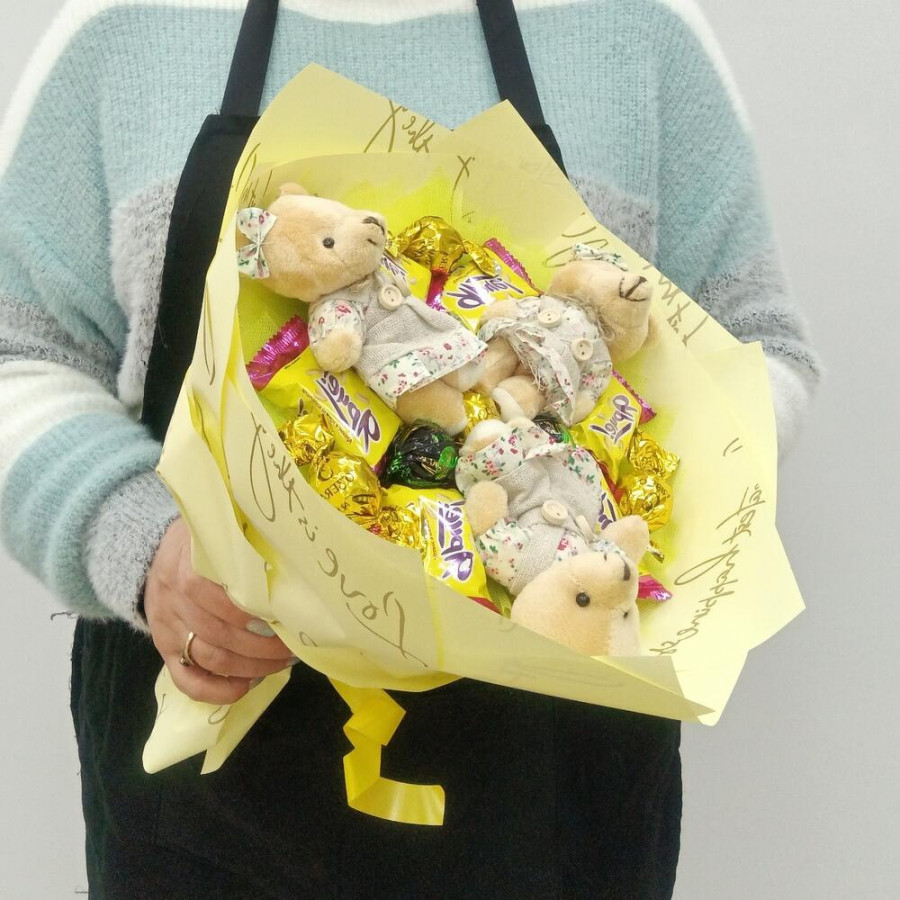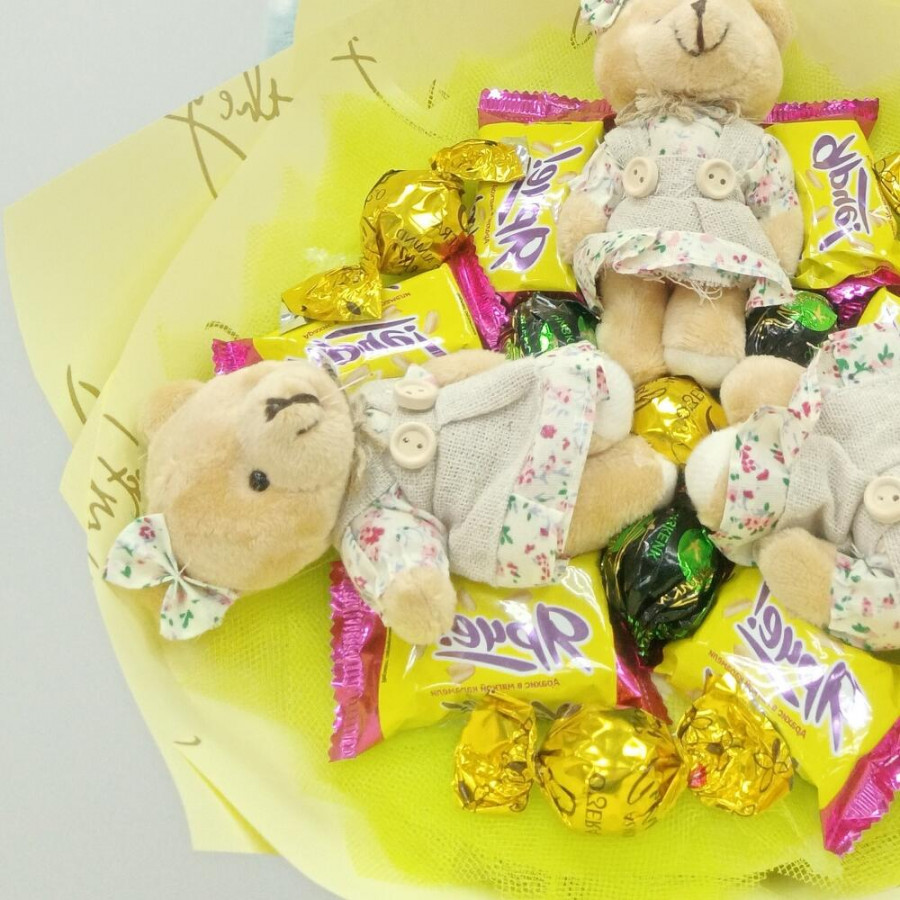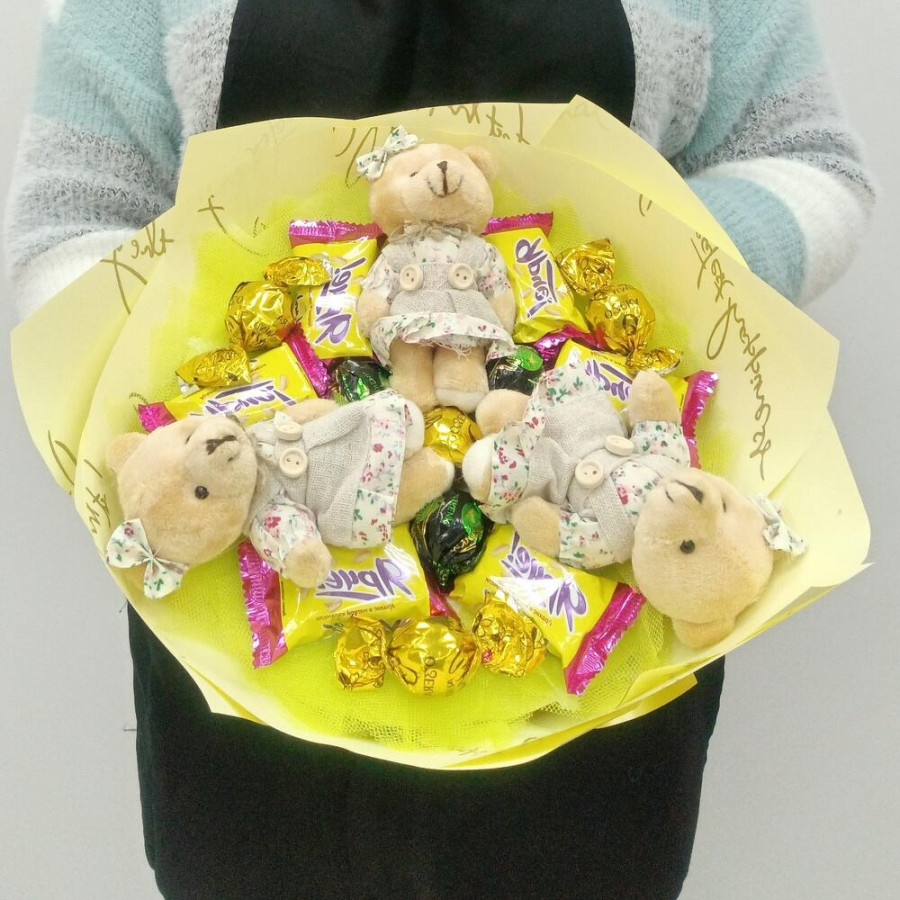 Букет из игрушек медвежат и конфет в Новошахтинске