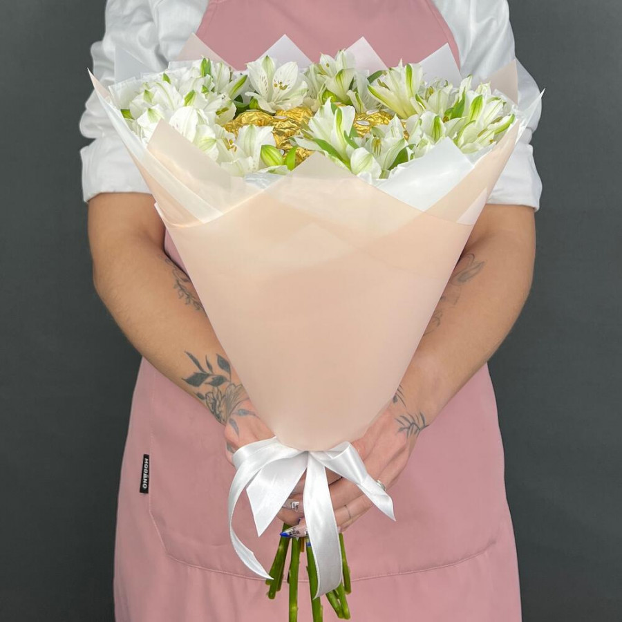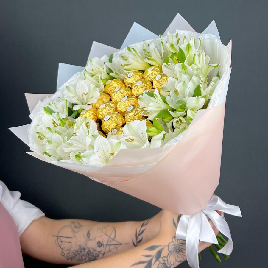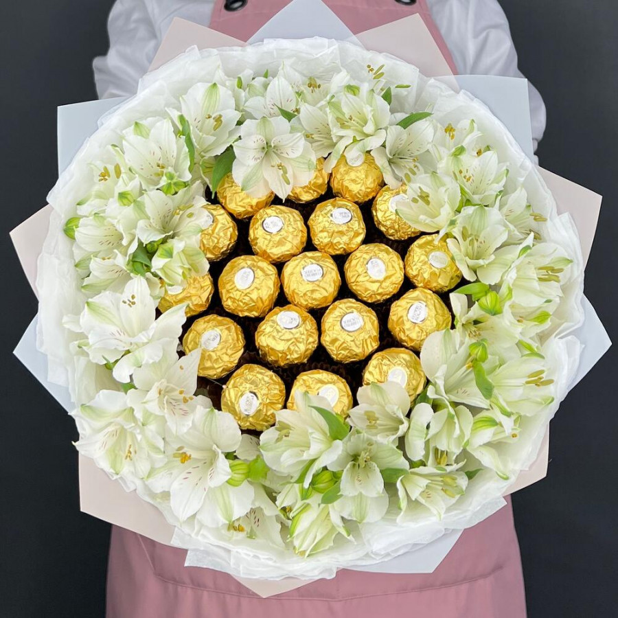 Букет из конфет Ferrero Rocher и и альстромерии в Новошахтинске