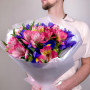 Букет из синих ирисов из розовых альстромерий в Новошахтинске