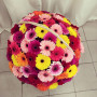 На фото композиция из 101 разноцветной герберы в корзине. В составе: гербера 101 шт, корзина (xl) 1 шт, атласная лента 1 шт, . Все цветы свежие и ароматные, букет красиво оформлен и отлично подходит для подарка. Доступна доставка цветов или самовывоз.
