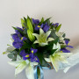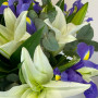 Букет из белых лилий с синими ирисами в Новошахтинске